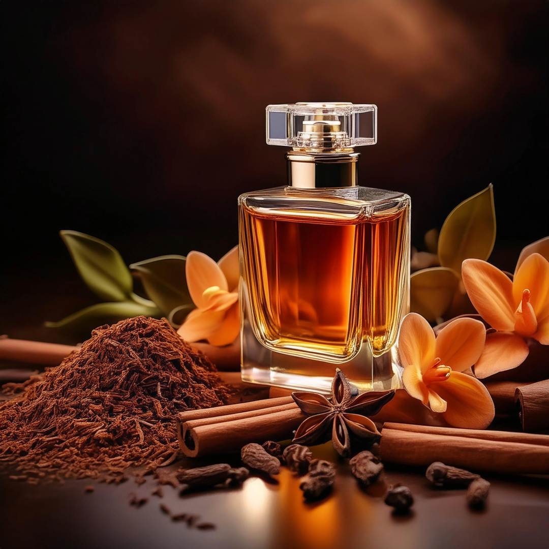 Tobacco Flower and Spice Woods Perfume. A sweet and subtle spicy woody scent with hints of cyclamen and carrot seed on a heart of tobacco flower, clove, cinnamon and patchouli, warming amber and smooth vanilla and a hint of luxurious chocolate